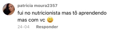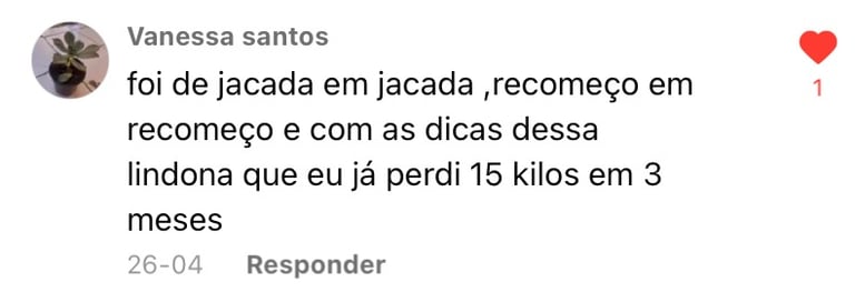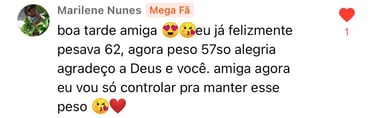 Trago detalhes que fez toda diferença no meu emagrecimento, por exemplo: como faço pra sair do efeito platô, itens que vale a pena ter, dicas pra controlar a fome, erros que parei de cometer, entre outras.